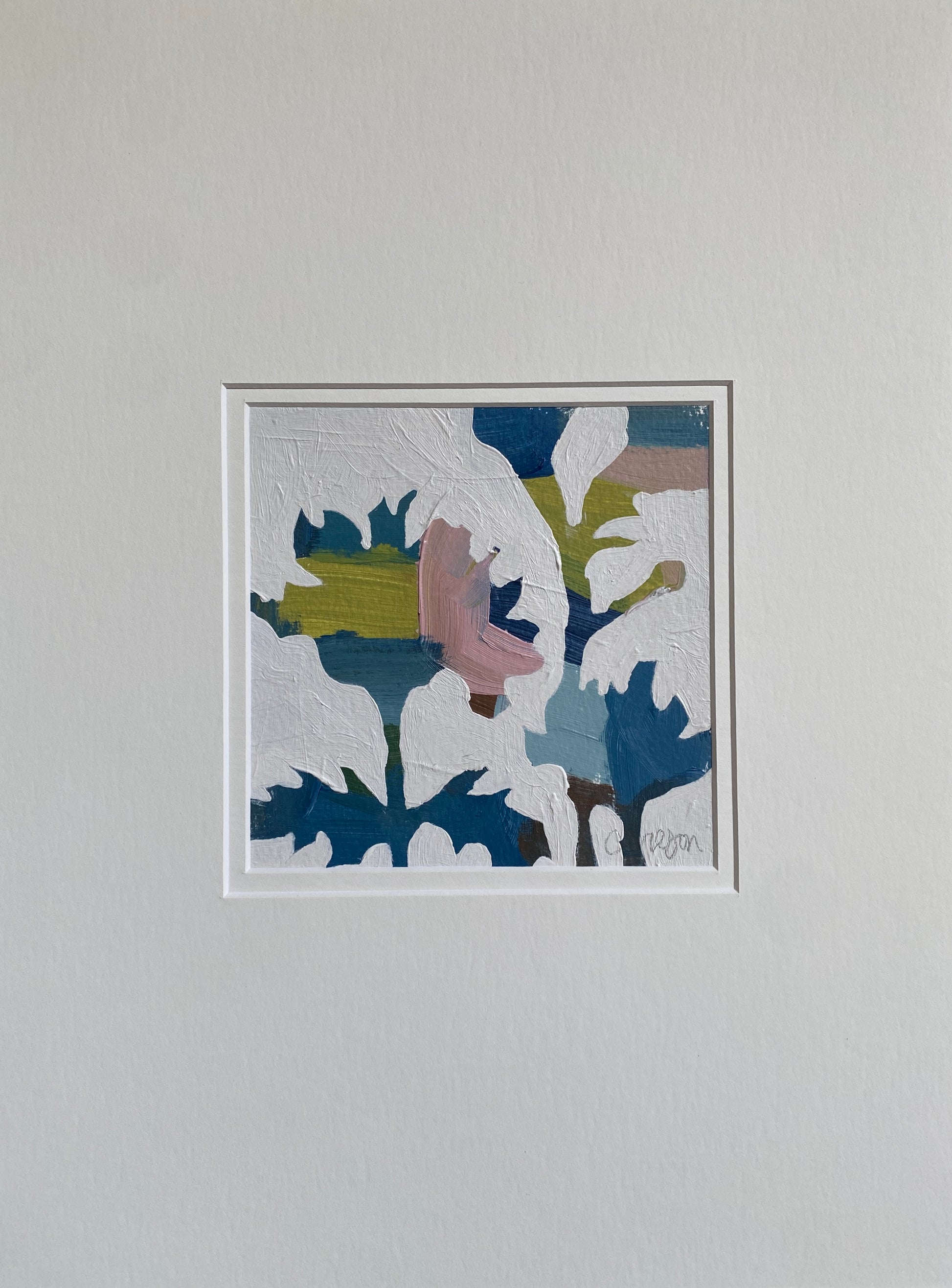 Signed, original 6" x 6" acrylic botanical on archival paper, double-matted in ivory to size 16" x 12" and ready to fit into any standard frame.